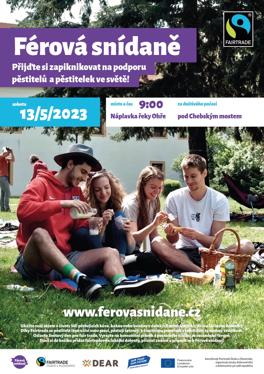 Statutární město Karlovy Vary a Kancelář architektury města Karlovy Vary (KAM KV) Vás srdečně zvou na Férovou snídani - piknikový happening na podporu fairtradových a místních zemědělců, který se letos uskuteční 13. května od 9:00 do 11:00 na Náplavce řeky Ohře.