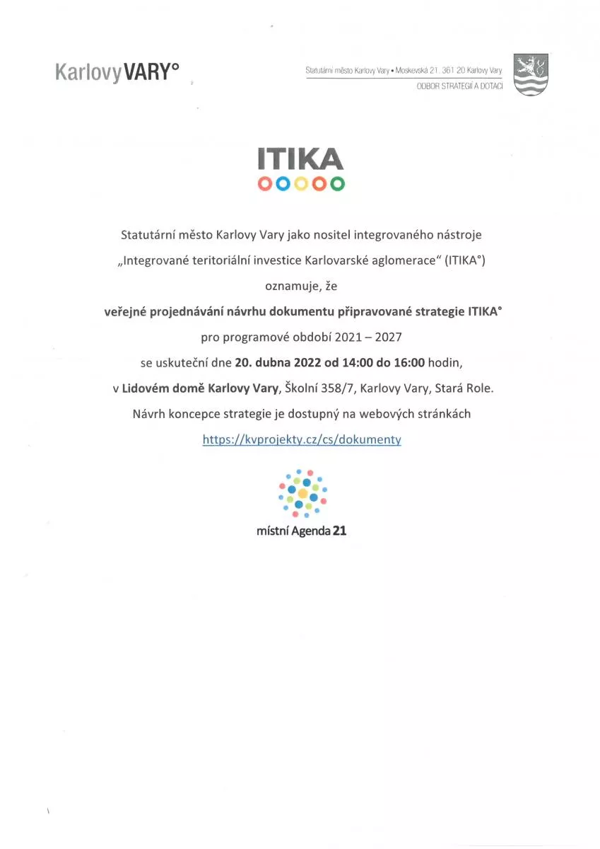 veřejné projednávání návrhu dokumentu připravované strategie ITIKA°